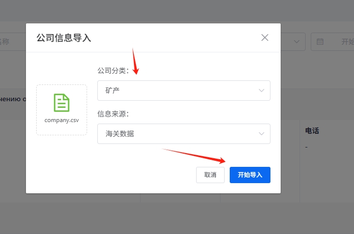 - 公司信息的导入(将海关数据的公司信息,进行导入系统)