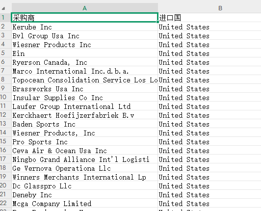 , 您需要在海关数据系统,导出csv表格,包含2列数据:采购商(进口商)