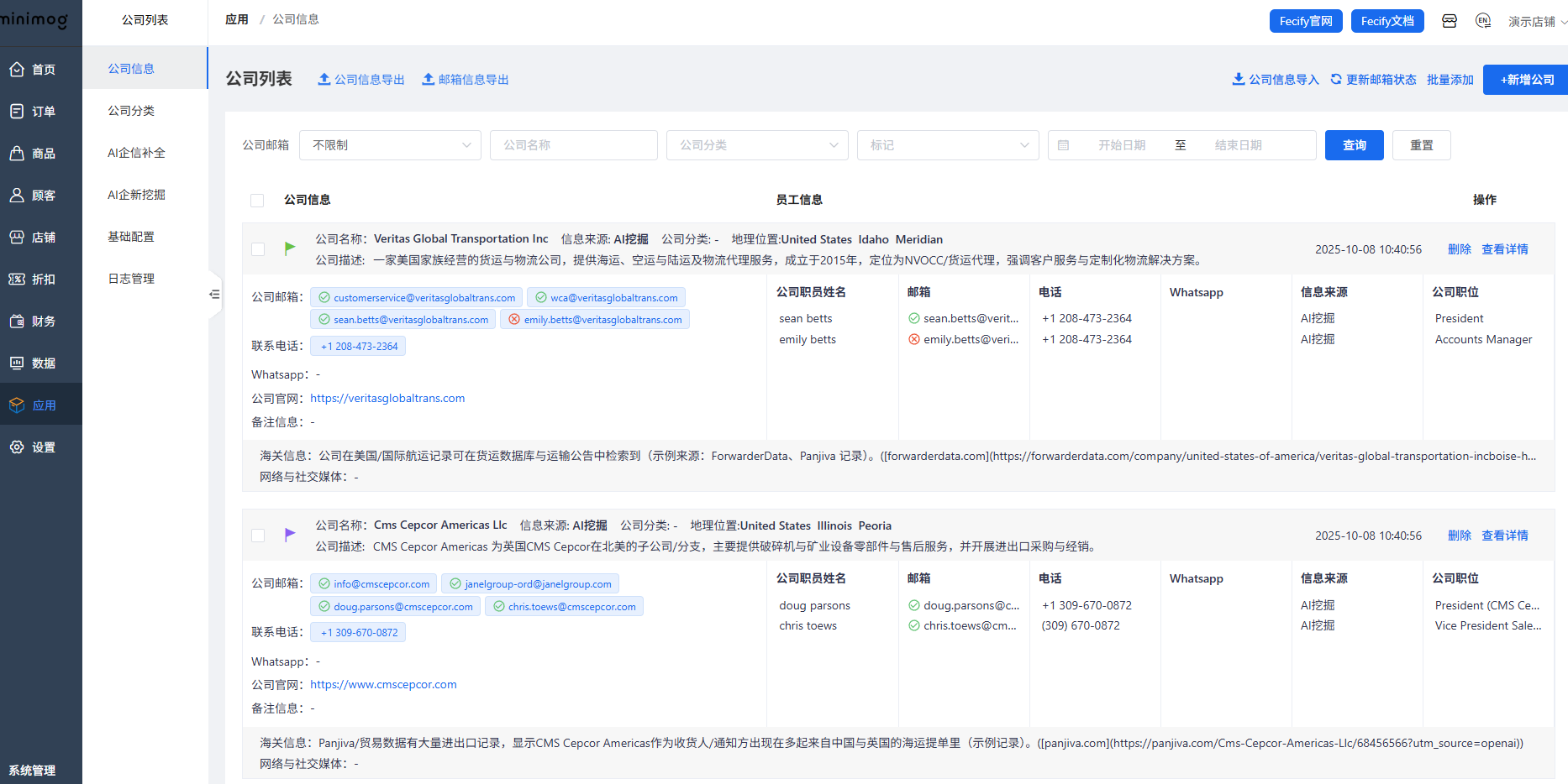上面是通过海关数据得到公司信息,然后通过AI进行公司联系方式的补全,这是最好的一种方式