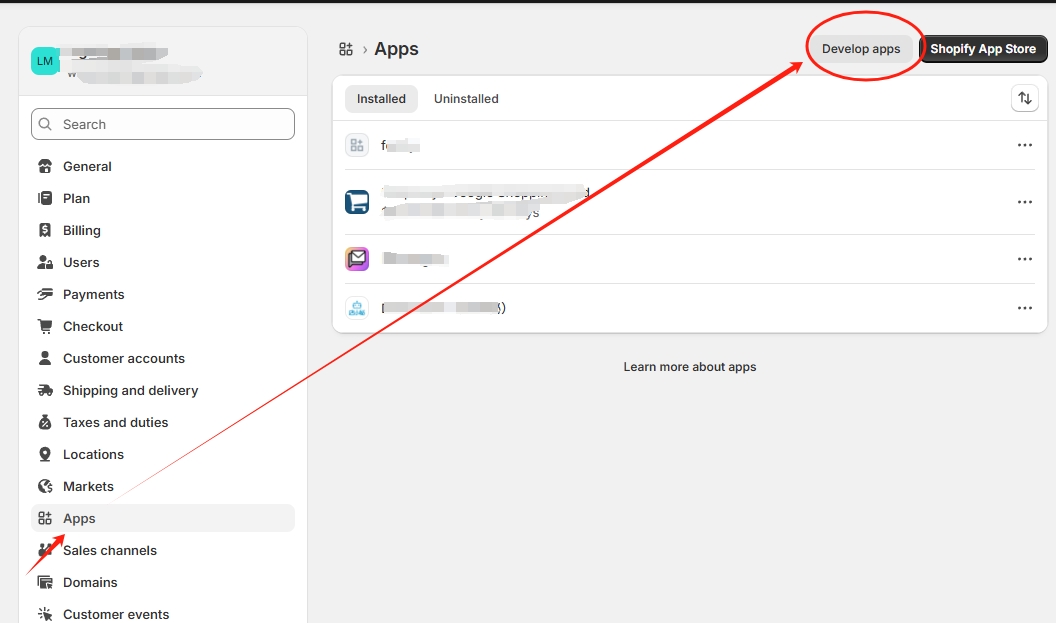 1.进入shopify后台,点击左下角的settings,进入设置页面