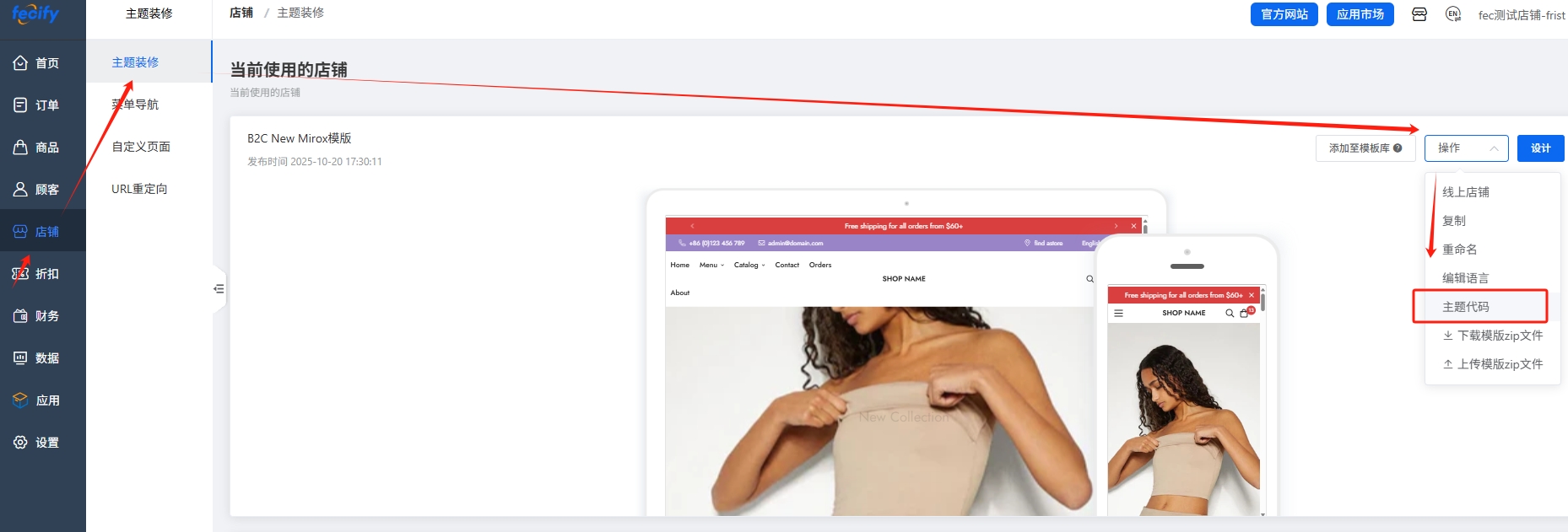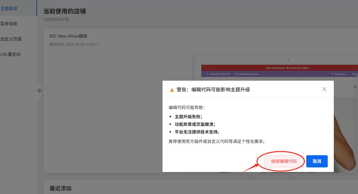 2.模版列表,每个模版都可以进行代码编辑,下面以当前模版进行操作