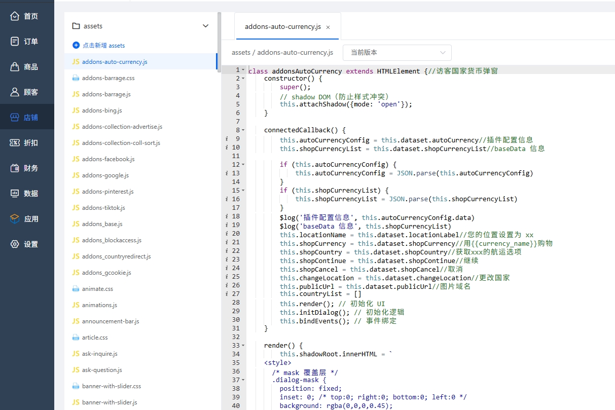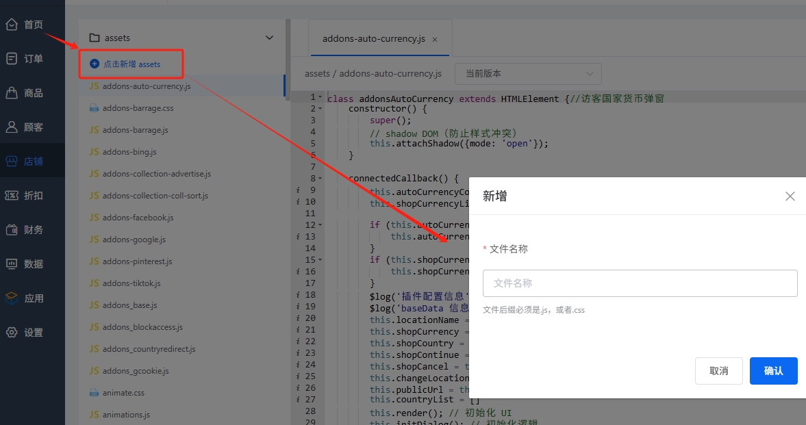 1.对于模版二次开发,在模版的在线编辑器,assets下面可以看到js和css文件列表