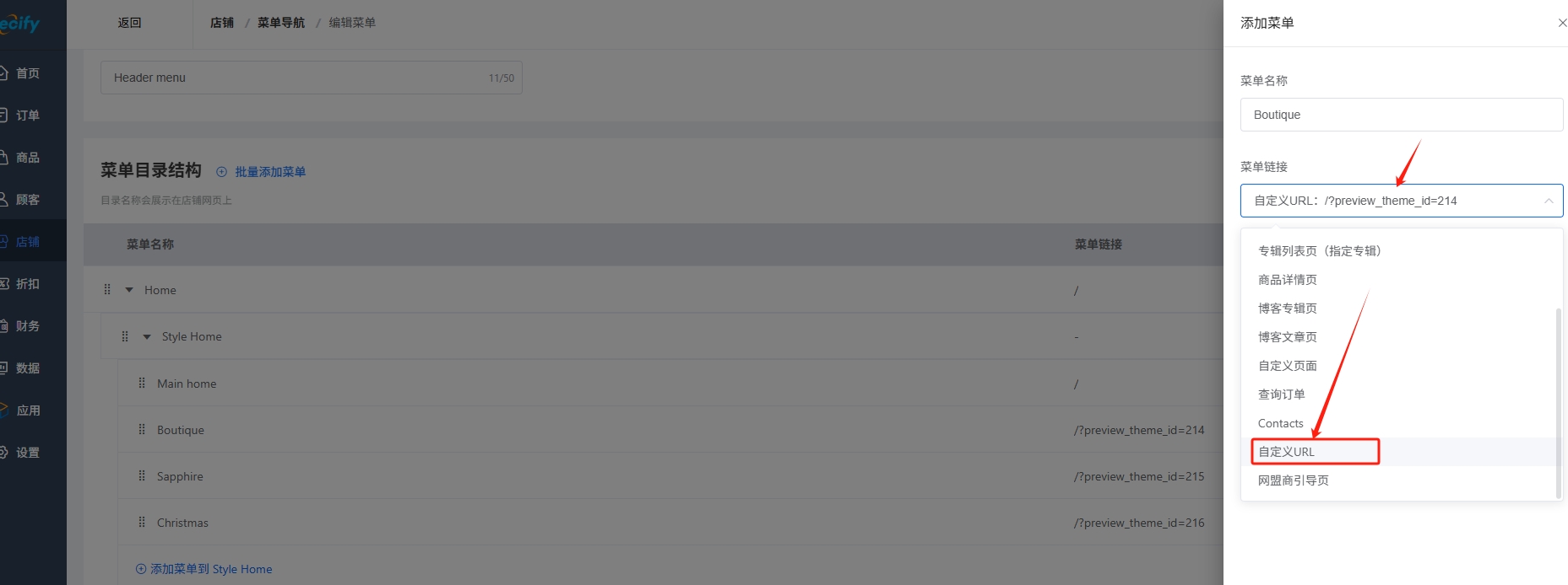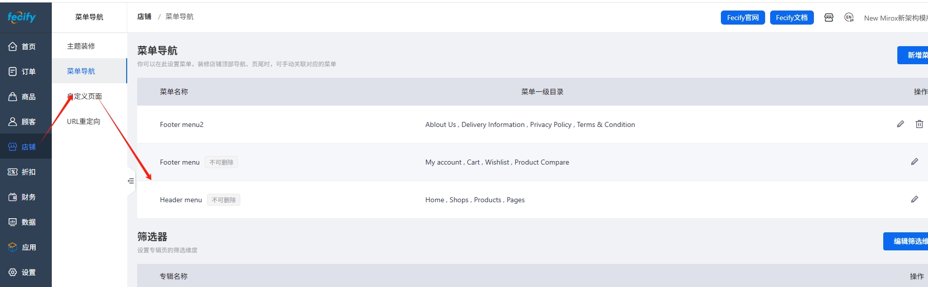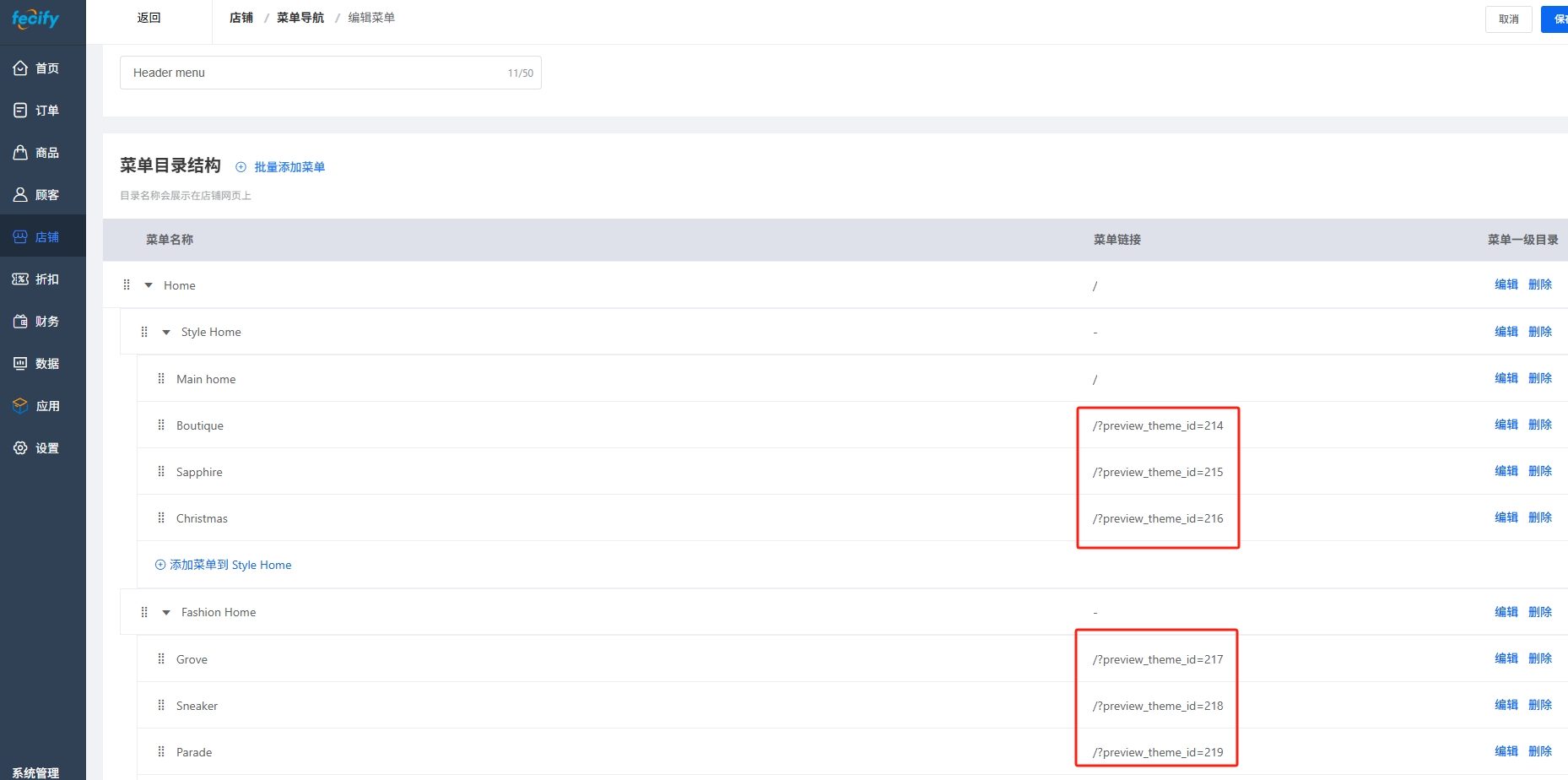 2.4保存菜单,刷新缓存,前台商城即可查看效果。