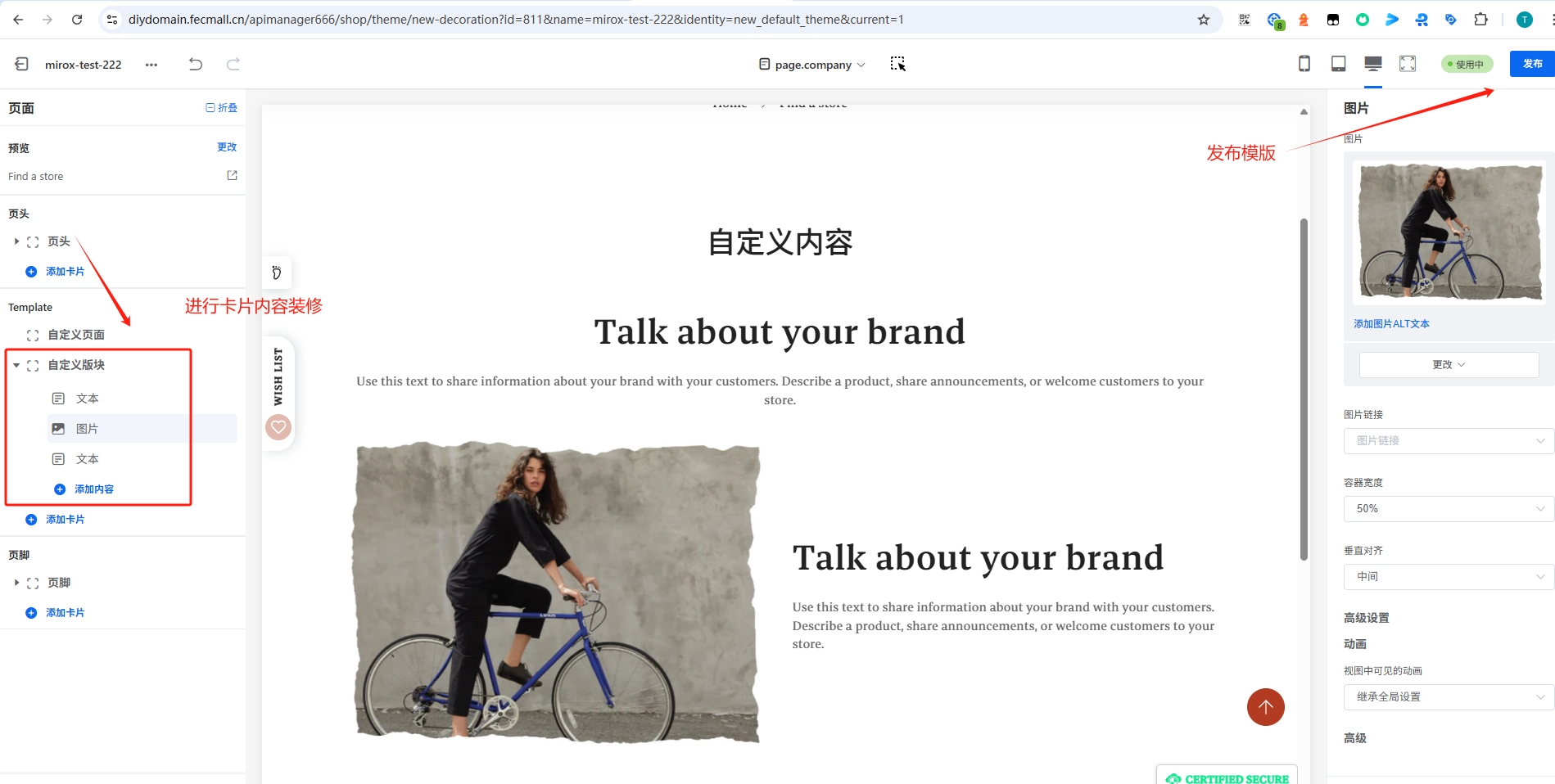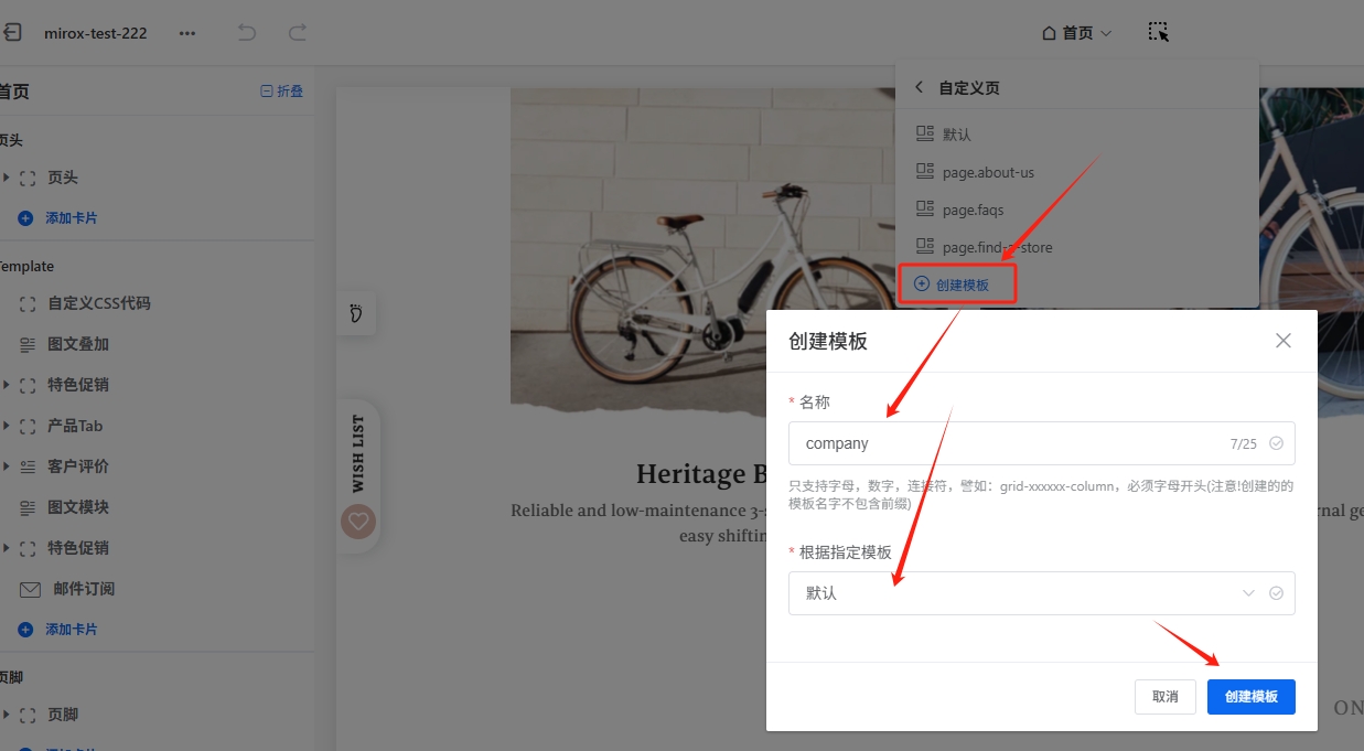 对于mirox模版,对自定义页面的内容,不在支持自定义页面,描述内容的装修,而是通过模版装修,页面布局来实现的