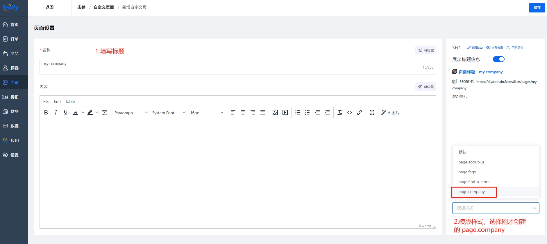 对于独立站而言,自定义页面一般用于公司的内容展示,譬如:关于我们页面,自定义页面有如下特点:
