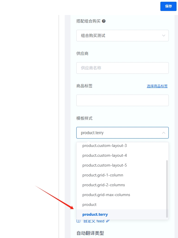 - 商家端后台,进入商品编辑页面,右侧部分,模版样式