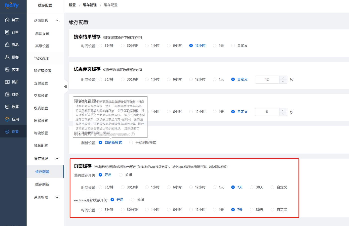 1.fecify系统的缓存是多方面的,有很多的数据区块的缓存,然后进行组装成json数据,在vue模版里面,vue进行js渲染,然后展示页面内容