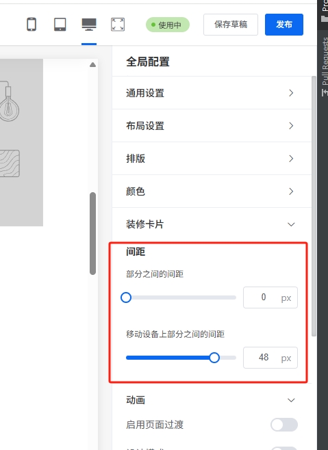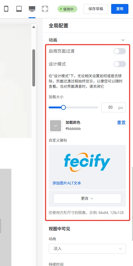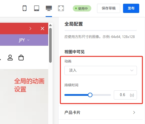 2.全局配置里面的动画配置,是全局的动画设置,在装修卡片中,如果配置:继承全局配置,那么就会使用全局配置的动画值