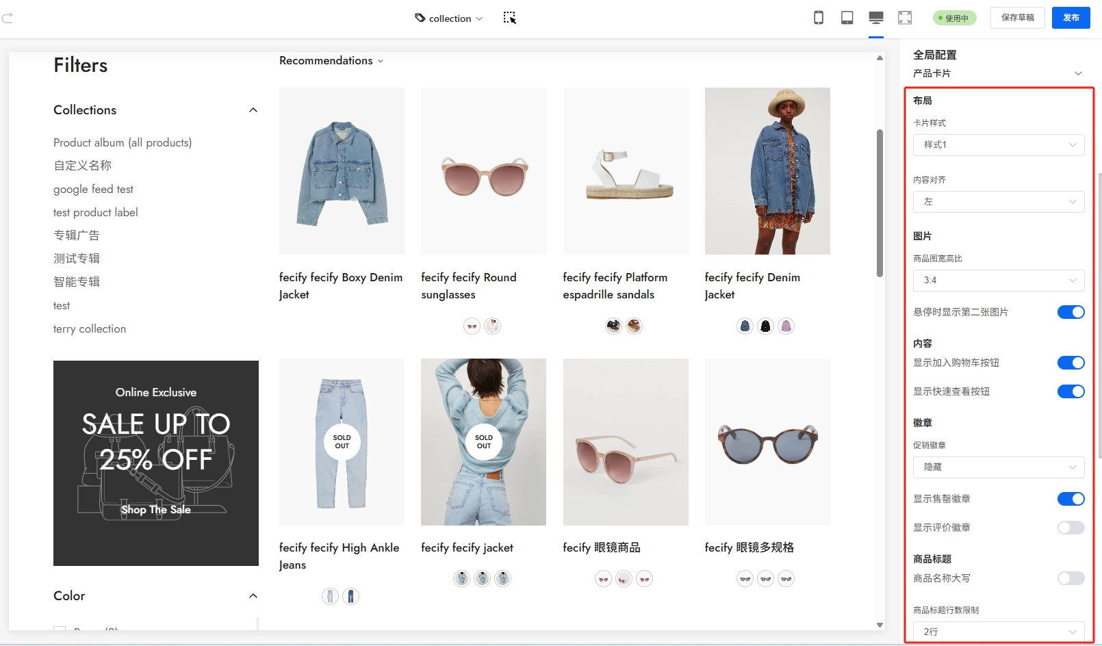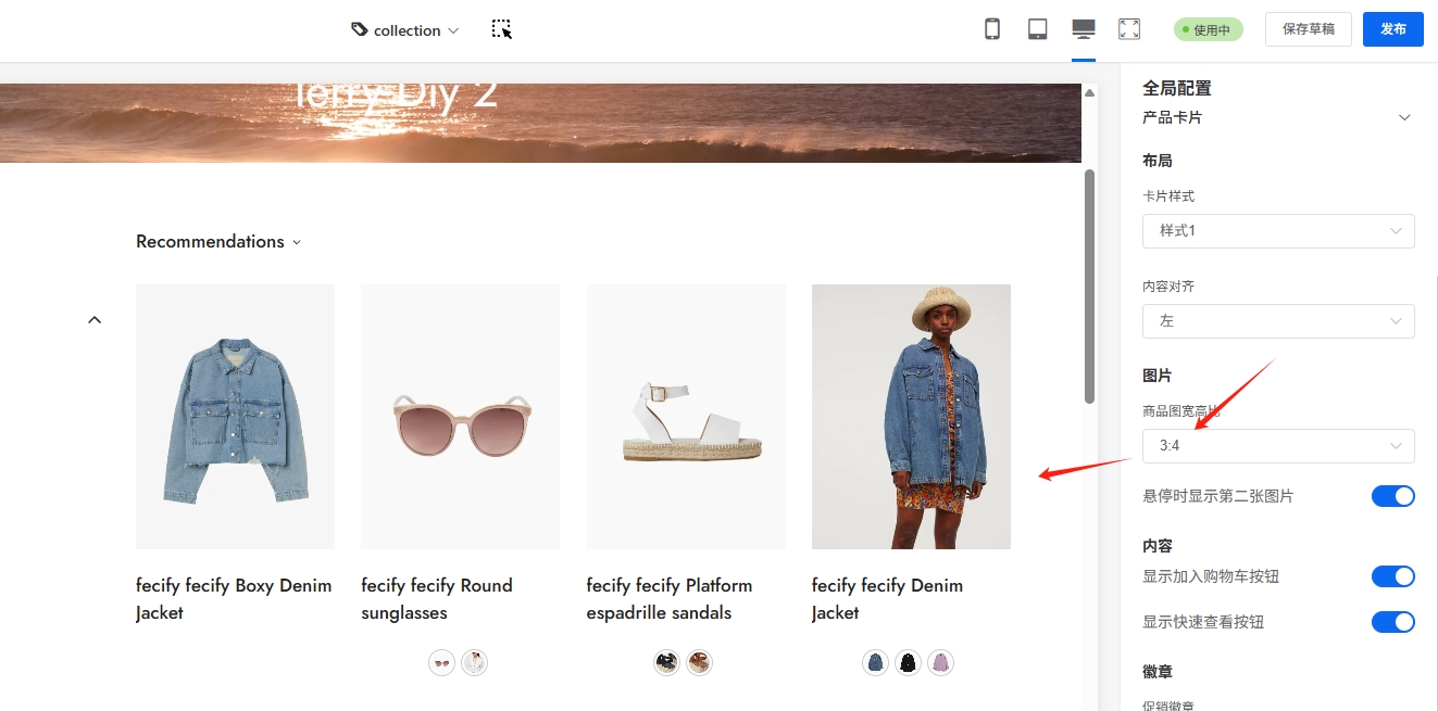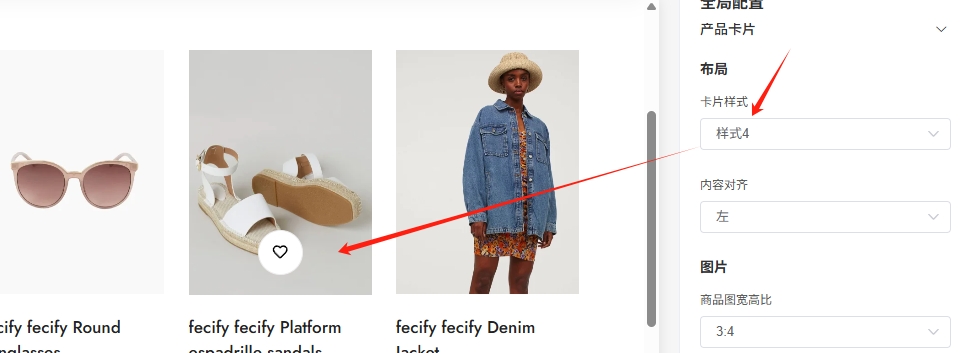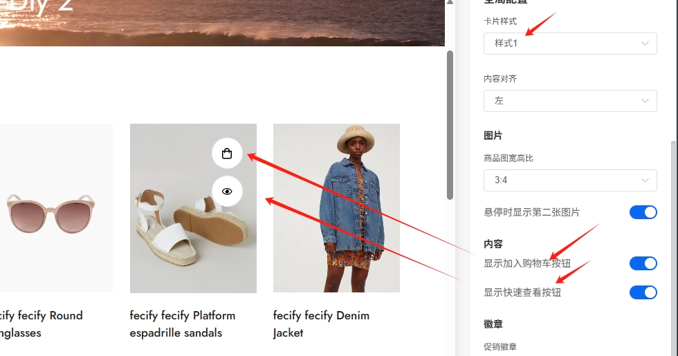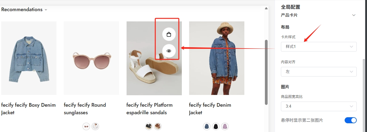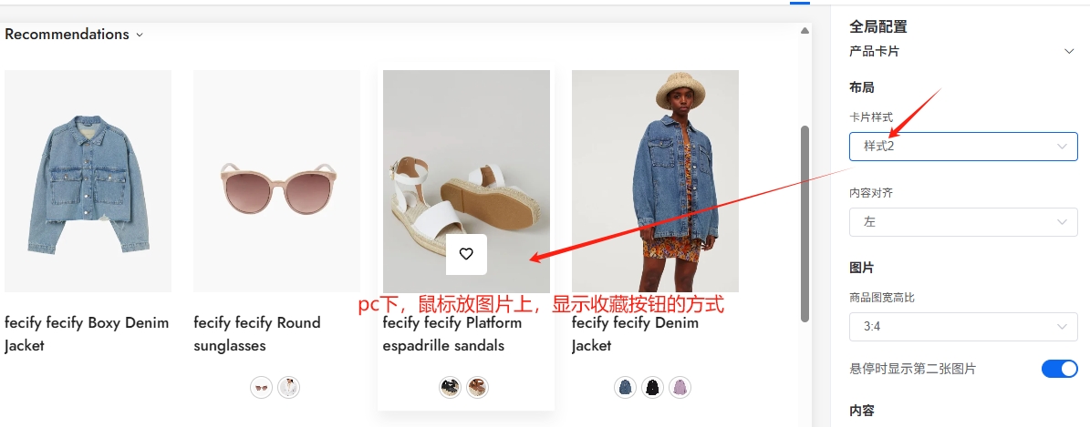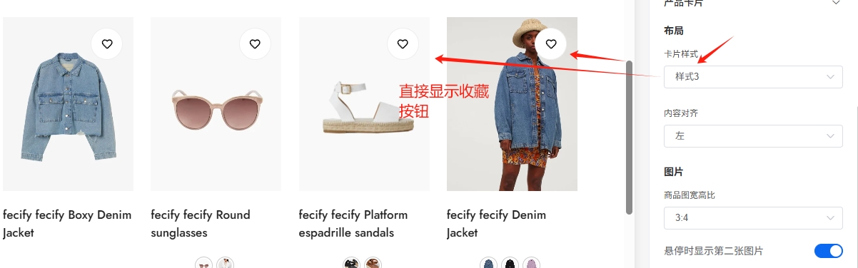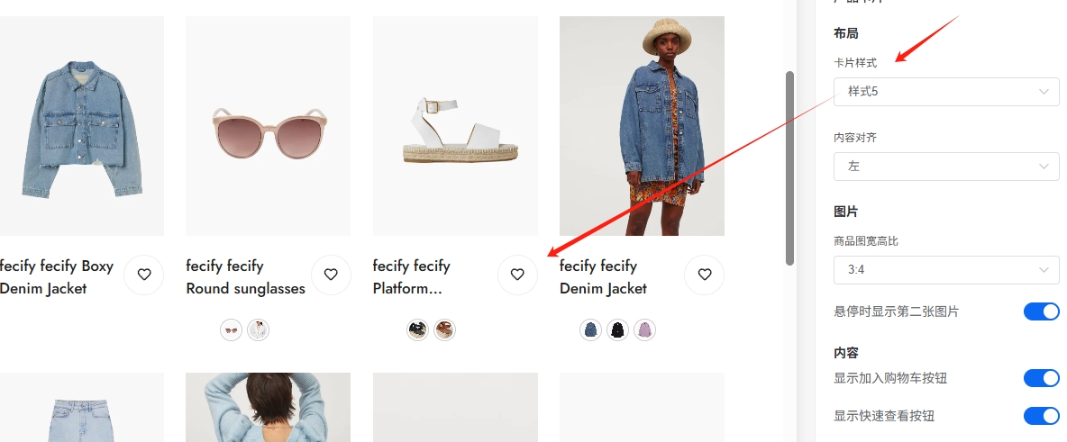 1.卡片样式,分为五种,指的是显示商品收藏,加入购物车,quick buy这几个按钮的显示方式
