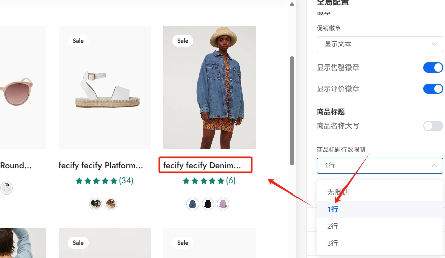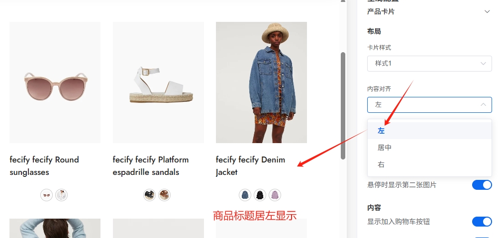 - 指的是商品专辑页,或者其他的商品列表,商品标题的显示方式:居左,居中,居右