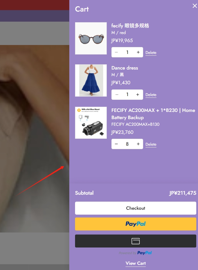 2.侧栏购物车(点击页面右上角的购物车图标,即可弹出)