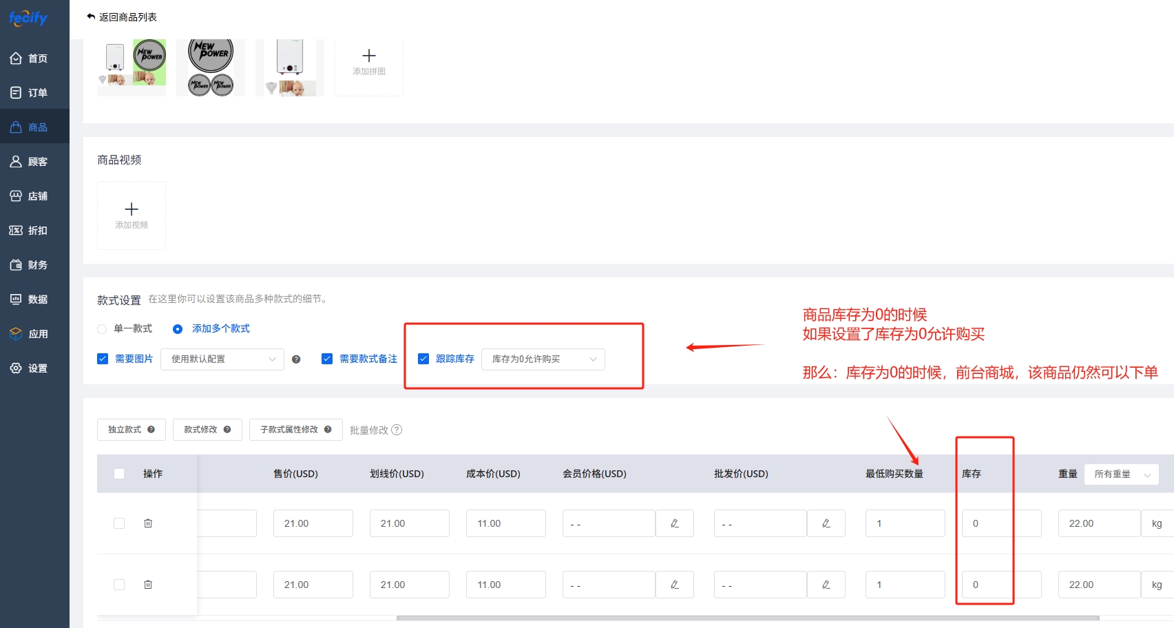 如果您希望商品无库存,不显示:out of stock,仍然可以下单,那么您可以开启这个开关