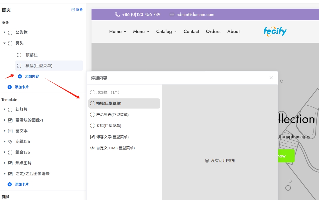 2.您可以点击添加内容按钮,给header添加子卡片