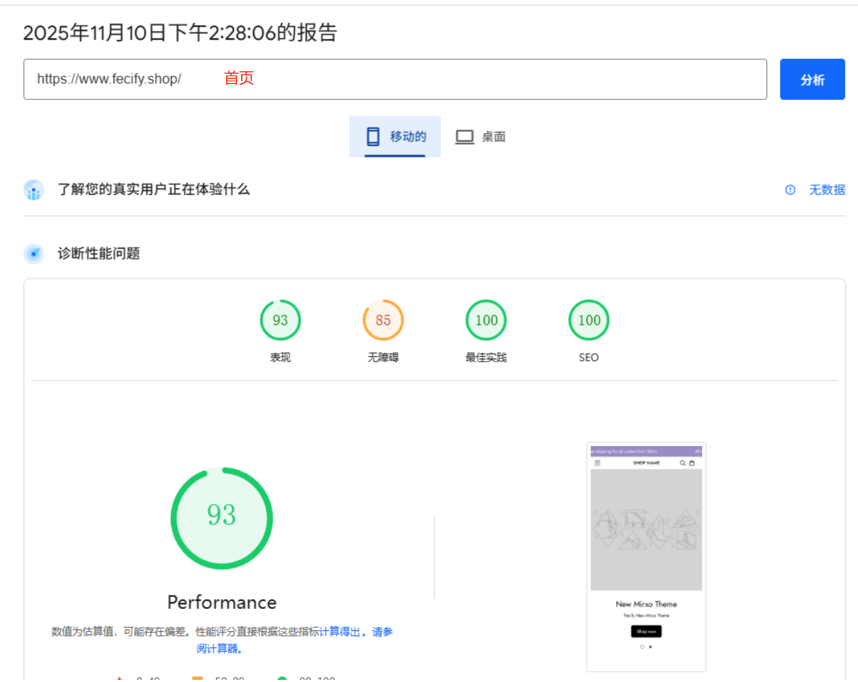 Fecify新架构模版,性能大幅度提升,google pagespeed跑分测评结果(全面飘绿)