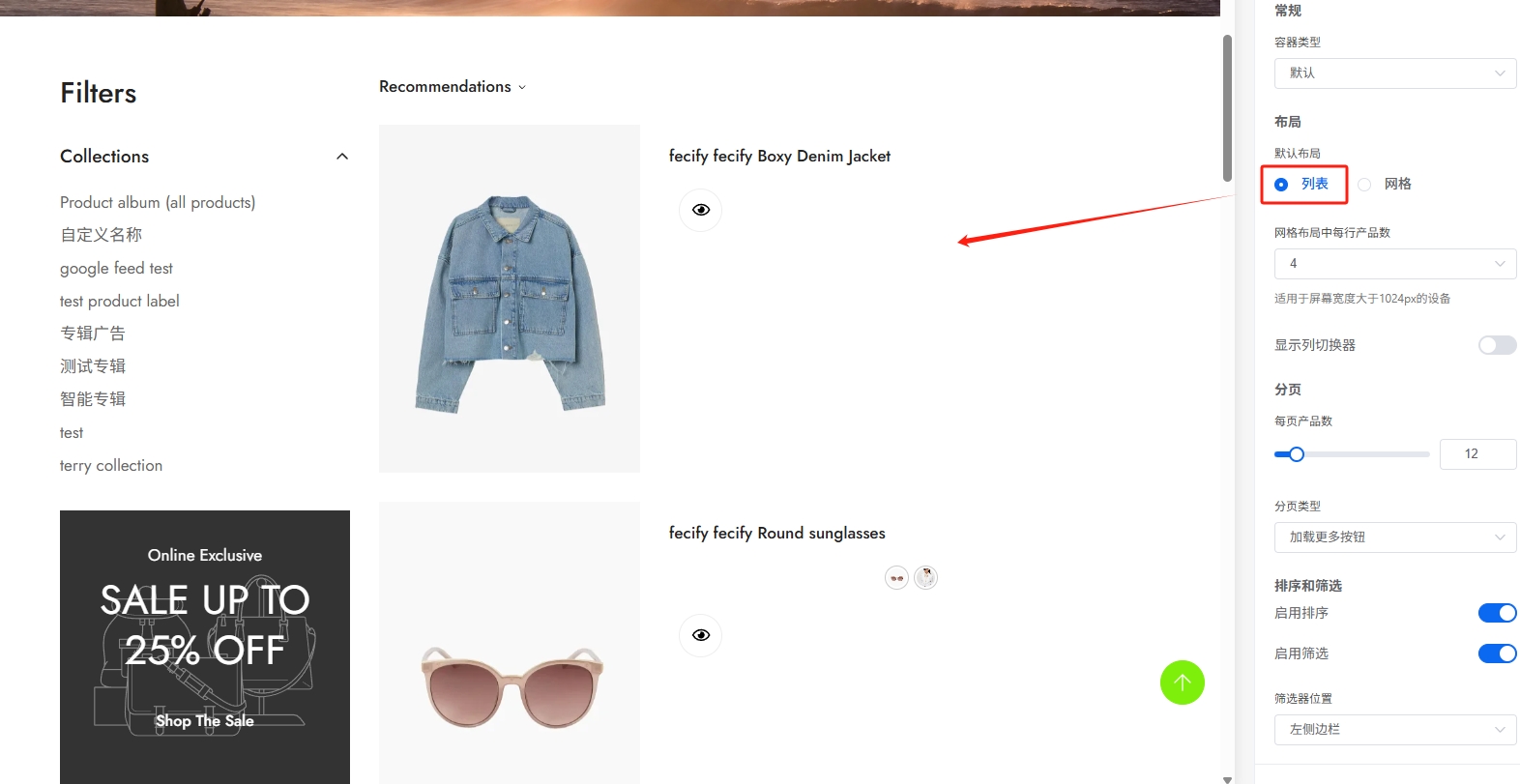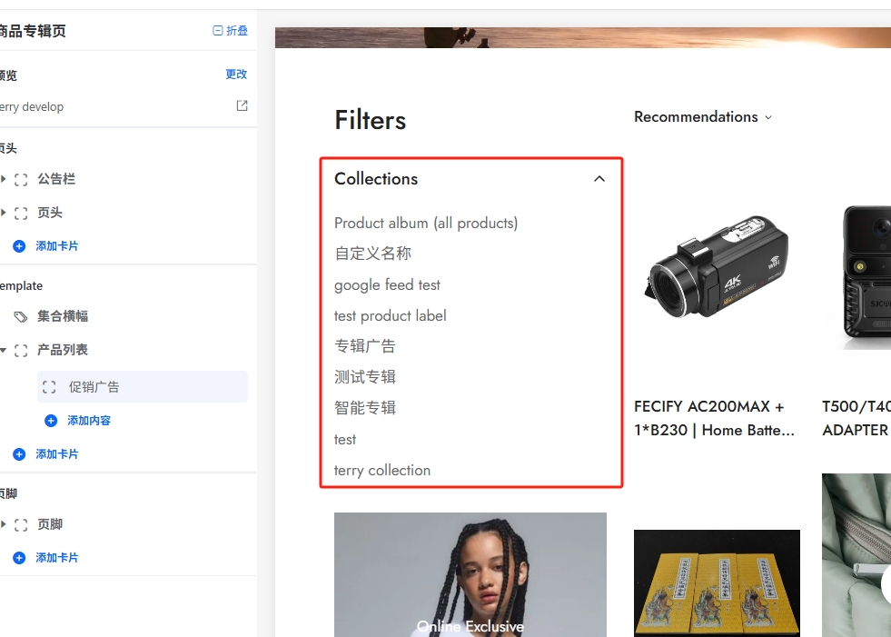 - 关于该插件的详细使用参考:Fecify 商品专辑列表