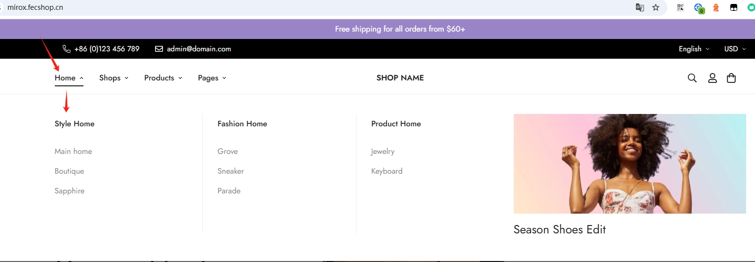 答:对于新模版,我们搭建了演示地址:https://mirox.fecshop.cn/