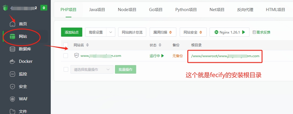 - 您安装了fecify,然后在宝塔里面删除站点,然后重新安装,进而会导致报错