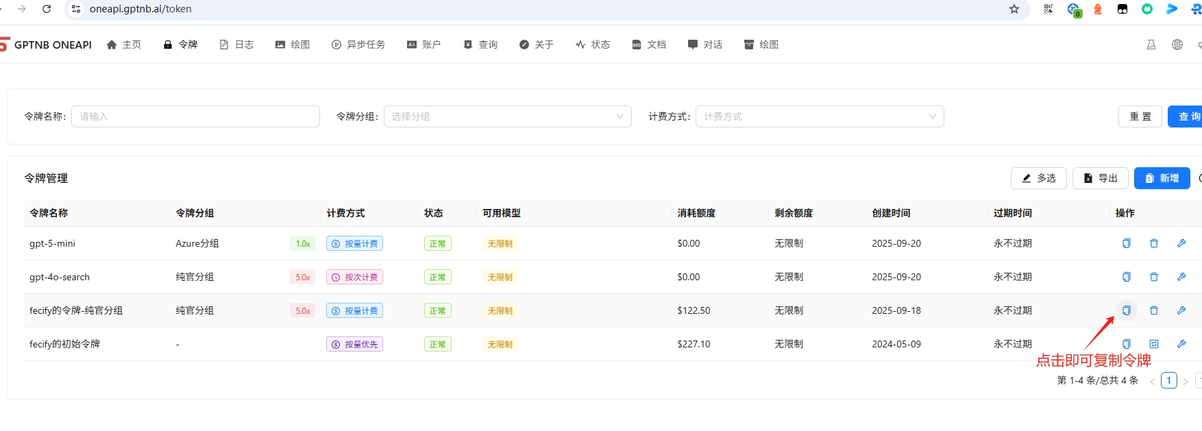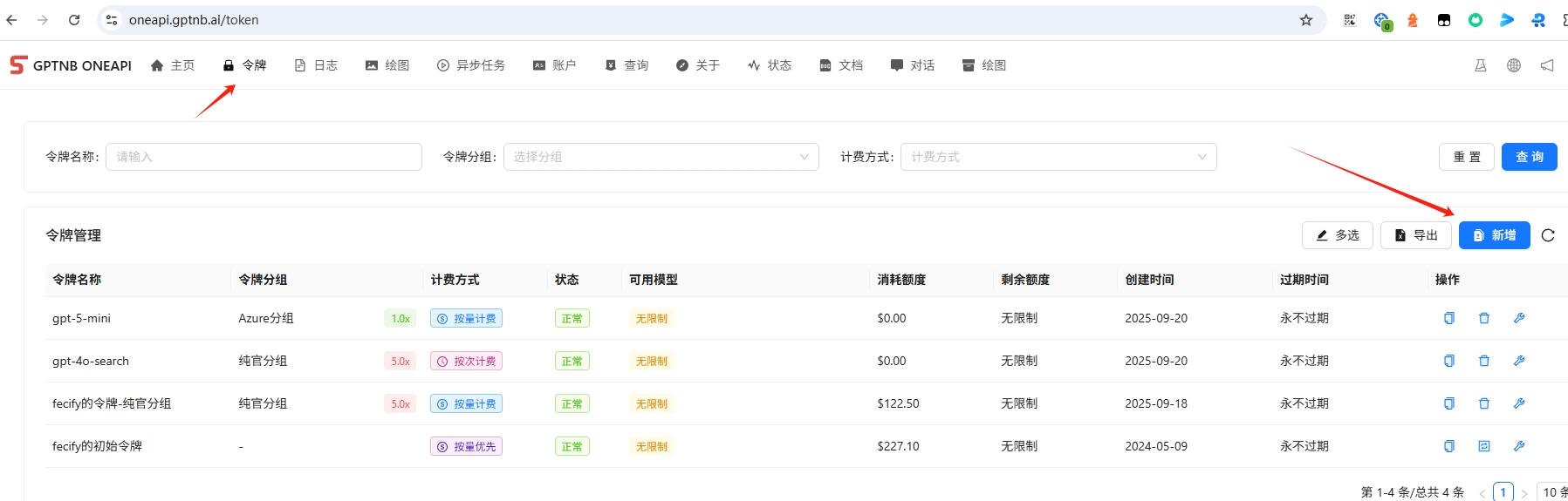 配置前,需要token,您需要先到这里注册账号:https://oneapi.gptnb.ai/