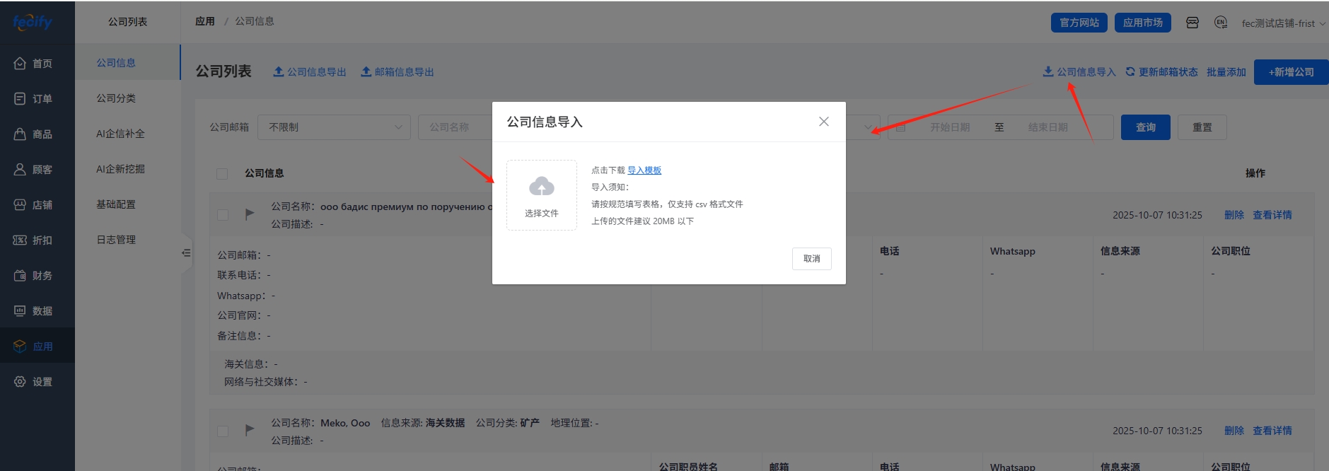 1.通过上面的步骤,得到了公司信息csv表格,到这里,就可以进行公司信息的导入了