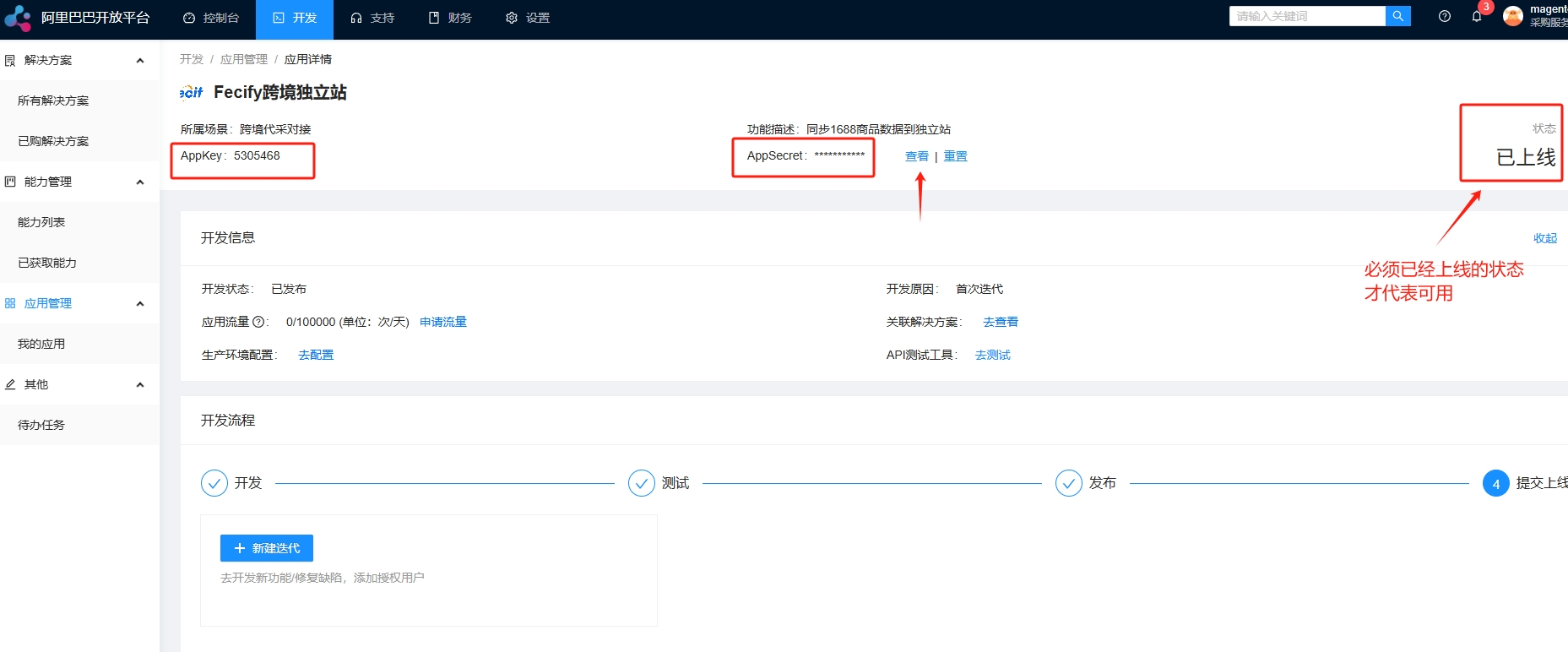 拿到应用的appKey和appSecret