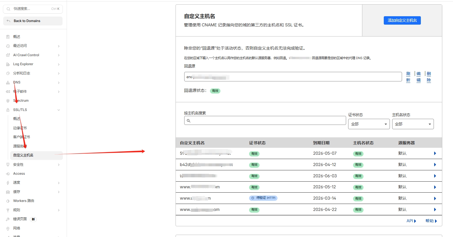 1.进入cloudflare,进入您的pro站点(作为saas结点的site站点),如下图