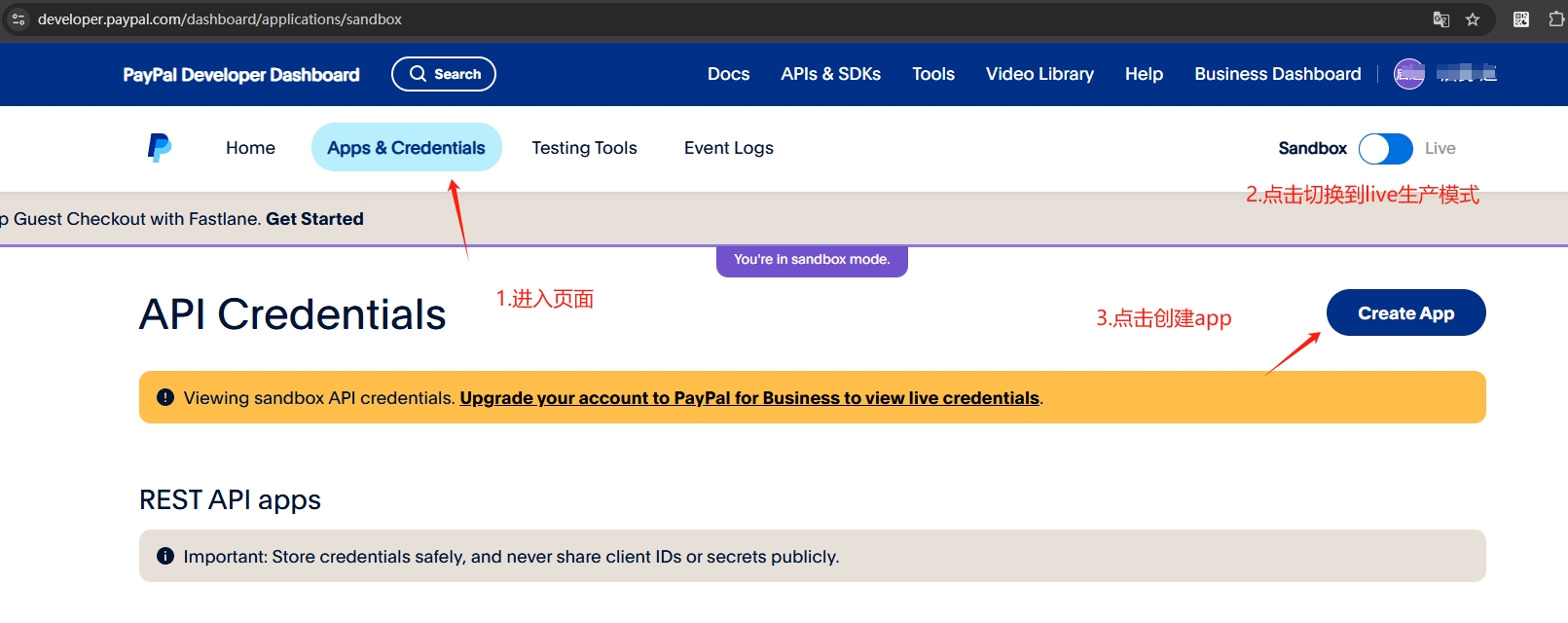 网址:https://developer.paypal.com/developer/ ,点击右上角登录按钮登录