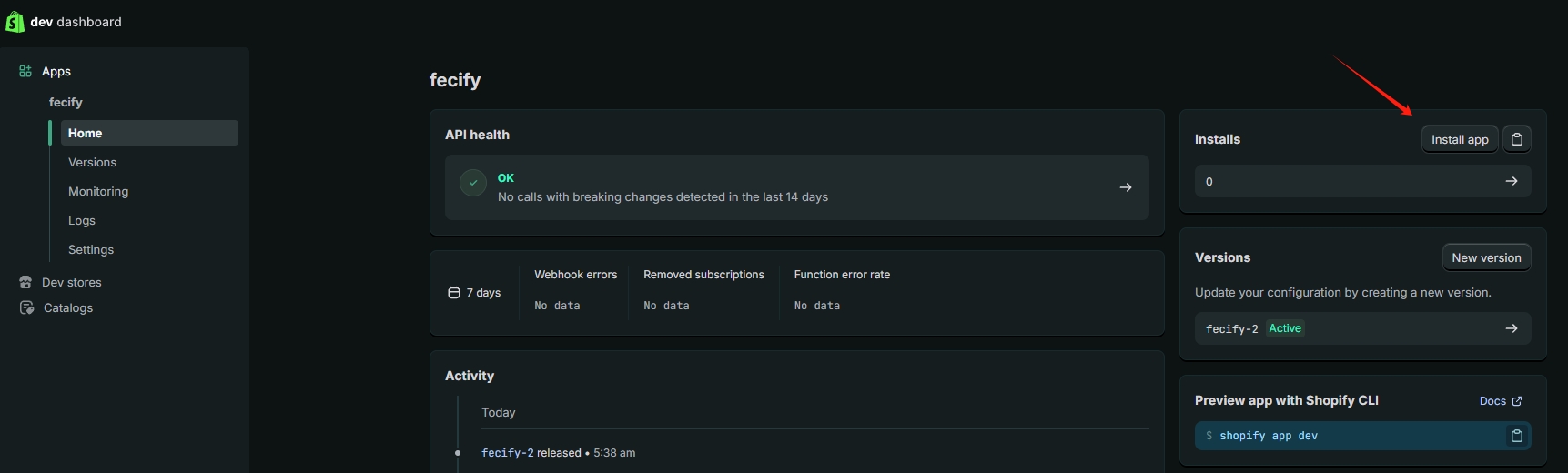 - 您需要记录下来Client ID 和 Secret (fecify后台,shopify同步数据插件里面需要进行配置)